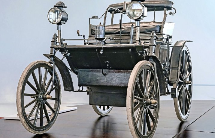 1892: pierwsze lampy karbidowe pochodziły jeszcze w prostej linii z powozów, przykładem jest ten Motor-Strasenwagen firmy Daimler. / Mercedes