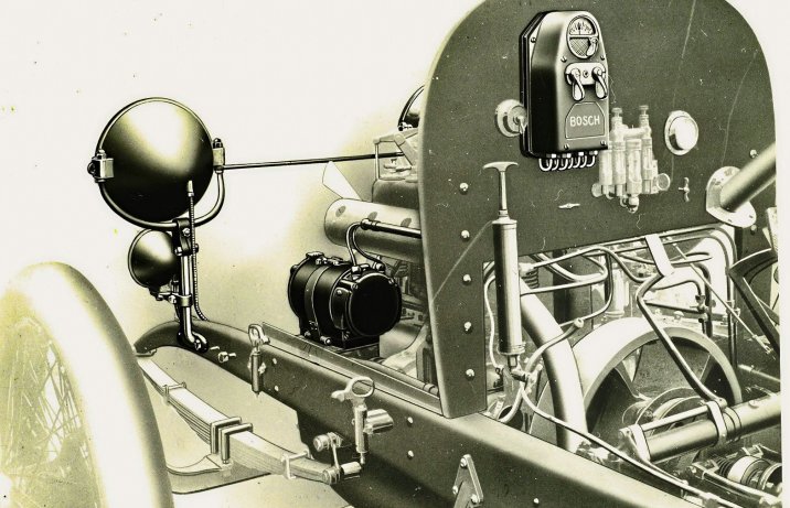 1913: firma Bosch opracowała pierwszą samochodową prądnicę, dzięki czemu możliwe było wykorzystanie na pokładzie oświetlenia z elektrycznymi żarówkami. / Bosch
