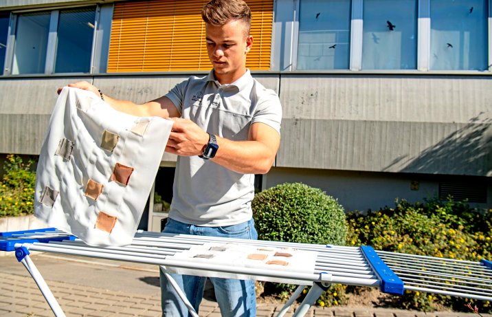 Aby to ustalić, posłużyliśmy się arkuszami tkaniny, które pokryliśmy ośmioma różnymi rodzajami zabrudzeń. Poza typowymi źródłami zabrudzeń, czyli produktami żywnościowymi takimi jak kawa, kakao i owsianka, nasączyliśmy je też równomiernie krwią oraz olejem.