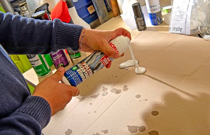 W przypadku sprayu Nigrin część piany zbiera się na zdejmowanej szczoteczce i kapie. Nieco bardziej skomplikowana jest aplikacja pianki do czyszczenia Sonax, ponieważ puszkę trzeba obrócić do góry nogami – nie jest to zbyt wygodne.