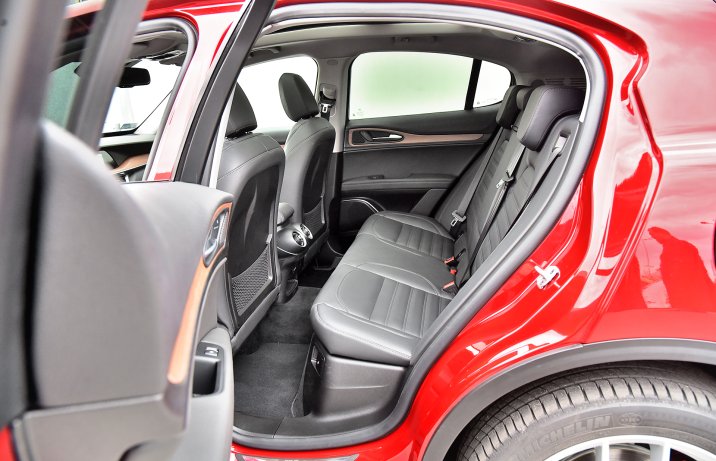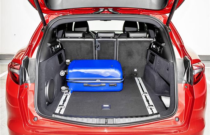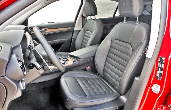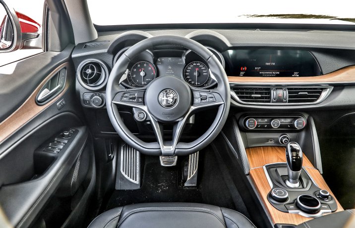 Stelvio ma 469 cm długości, 191 cm szerokości i 165 cm wysokości, przy rozstawie osi wynoszącym 282 cm. To pozwoliło na wygospodarowanie względnie przestronnej kabiny i dużego bagażnika. Największe poruszenie zrobiło jednak podwozie, już pierwsze jazdy dziennikarskie ujawniły doskonałe prowadzenie. To zasługa m.in. świetnie zestrojonego zawieszenia, ale też systemu DNA i blokady tylnego mostu w wybranych wersjach.