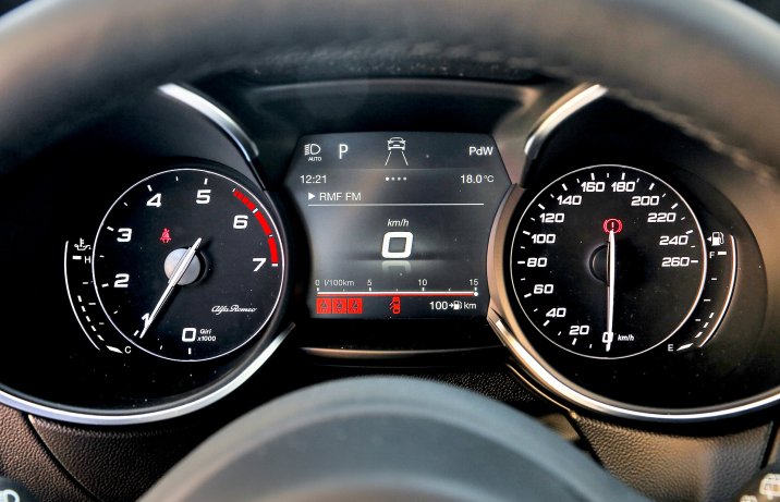 Deskę urządzono na wzór tej z Giulii, choć jakość materiałów początkowo była słaba. Poprawiono to dopiero podczas pierwszego liftingu. Dwa głęboko osadzone zegary sąsiadują z ekranem centralnym. Ergonomia jest poprawna, fotele wygodne, w drugim rzędzie może przeszkadzać wysoki tunel centralny. Widoczność do tyłu nie imponuje, bez kamery ciężko jest sprawnie manewrować.