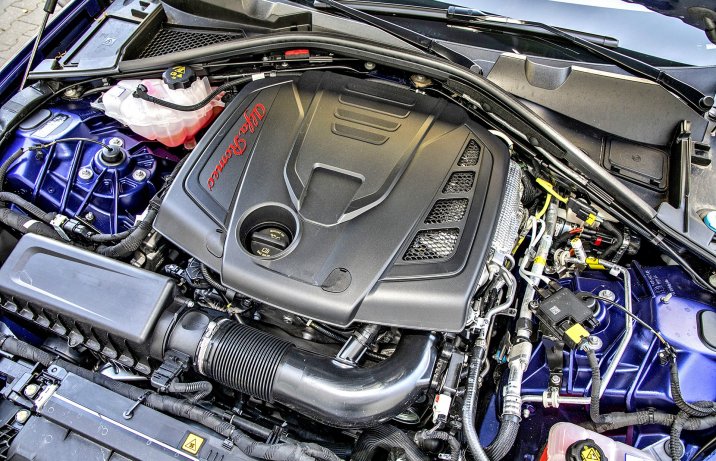 280-konny silnik zaskakuje charakterem. Przy spokojnej jeździe już z najniższych obrotów przyspiesza w sposób liniowy, bez wibracji oraz zaskakująco łagodnie. Wtóruje mu wtedy 8-stopniowy automat, zmieniający biegi tak miękko, że niemal niezauważalnie. Efekt: płynna jazda i zużycie paliwa w trasie poniżej 7 l/100 km (na autostradzie: ok. 9,5 l, w mieście – ponad 12 l). Z drugiej strony 2-litrowa jednostka napędowa czyni Giulię autem zdolnym do mocnych zrywów.