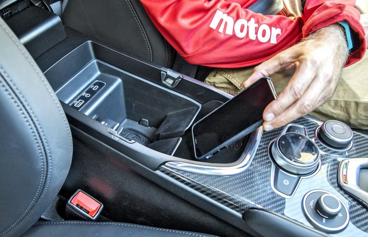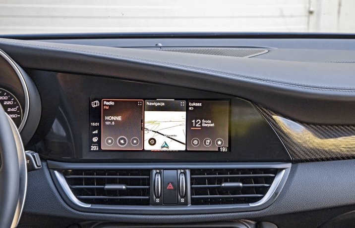 Kokpit Alfy przekonuje dopracowanym rozmieszczeniem elementów obsługi oraz miękko wyłożonymi schowkami i wysoką jakością. Montaż jest bardzo solidny, a materiały, szczególnie w górnych partiach – o adekwatnej do ceny próbie. Bez dwóch zdań Giulia wyszlachetniała, na co pracują też m.in. odnowiona kierownica czy mały detal, jak obwódka z fortepianowej czerni dookoła wejścia USB na konsoli środkowej. Wciąż irytują jednak małe kieszenie w drzwiach, płytki schowek w desce czy brak funkcji auto hold, utrzymującej Alfę w miejscu na postoju.
