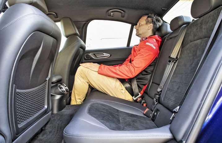 Ale to też auto o zaskakująco przyjemnym usposobieniu także z punktu widzenia pasażera. Poprawione tłumienie hałasu, m.in. dzięki grubszej przedniej szybie, czyni Giulię jednym z najcichszych aut w klasie (61,4 dB przy 100 km/h). Jeśli do tego dodać niezwykle jędrną pracę adaptacyjnego zawieszenia, okaże się, że ta włoska limuzyna znakomicie łączy ogień z wodą. Szczególnie w podstawowym ustawieniu, w którym przez niskie progi zwalniające przejeżdża niemal tak, jakby ich nie było, a nieduże pojedyncze nierówności tłumi szybko i gładko.