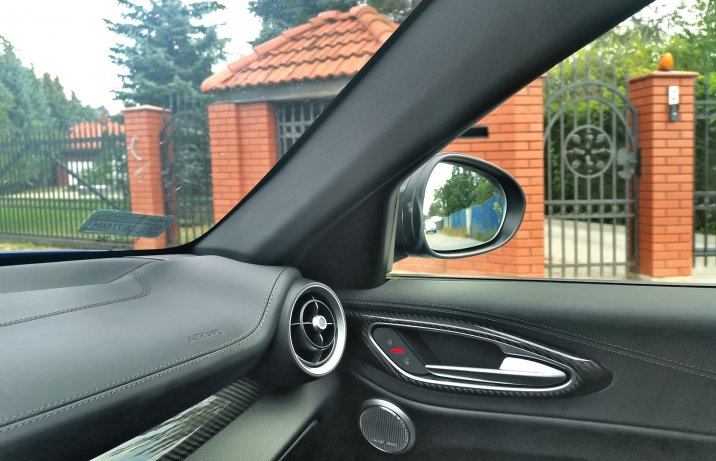 Odpowiadają za to nie tylko seryjne 19-calowe obręcze, ale i czarne dodatki w nadwoziu (m.in. lusterka, otoczka scudetto), które opcjonalnie można zastąpić włóknem węglowym (pakiet Veloce Cabron za 10 000 zł). Szkoda, że przy okazji liftingu w tylnych klamkach nie pojawiły się czujniki dostępu bezdotykowego, co u rywali jest normą.