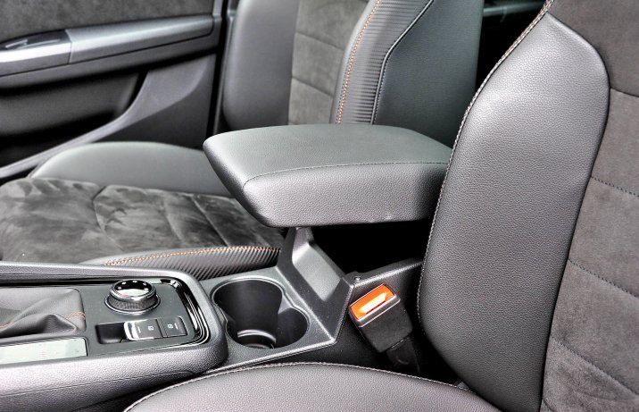 Podłokietnik pomiędzy przednimi fotelami – przesuwany i z regulowanym kątem pochylenia. Jest bardzo wygodny.