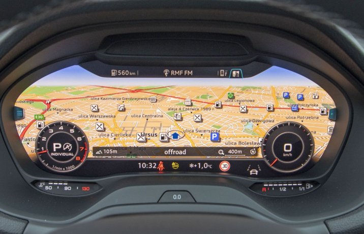I choć grafika centralnego ekranu pamięta rok premiery Q2, a więc nie prezentuje się specjalnie nowocześnie ani widowiskowo, system działa bardzo sprawnie i tak naprawdę ma wszystko, czego potrzebujesz. Co ważne, w przeciwieństwie do najnowszych tego typu rozwiązań Audi ekran nie jest dotykowy, więc dalej możesz korzystać z wygodnego panelu MMI z pokrętłem i przełącznikami kierującymi do najważniejszych funkcji. A to bardzo ułatwia zarządzanie multimediami i nie odwraca tak uwagi od jezdni jak “dotyk”. Szkoda jednak, że miejscami obsługa bywa nieintuicyjna. Przykład? Choćby zmiana koloru podświetlenia nastrojowego (oczywiście opcjonalnego), która wymaga najpierw zaznaczenia odpowiedniego menu, a później... musisz zdać się na własną intuicję i skierować centralne pokrętło w prawo. I dopiero wtedy masz dostęp do wyboru kolorów i jasności poszczególnych stref.