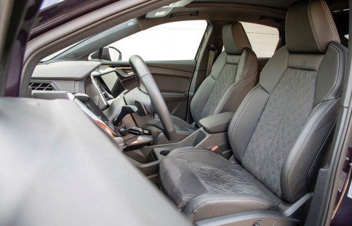 Q4 Sportback to średniej wielkości SUV – na parkingu zajmuje tyle miejsca co Toyota RAV4. Rozmiarami plasuje się między modelami Q3 Sportback i Q5 Sportback. Ale dzięki platformie przeznaczonej tylko dla aut elektrycznych (m.in. bez tunelu na podłodze) wielkością wnętrza odpowiada temu większemu. Z przodu jest właściwie równie przestronne, a z tyłu przegrywa na wysokość o 2 cm, za to ilością miejsca na nogi pokonuje go o 5 cm, a Q3 Sportback – aż o 10 cm.