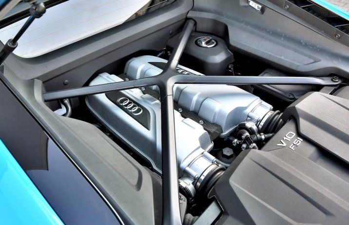 Wystarczy jednak krótka przejażdżka Audi R8, by uświadomić sobie, że wraz z wolnossącymi silnikami coś bezpowrotnie znika. Jego 5,2-litrowa jednostka V10 konstrukcji Lamborghini występuje w dwóch wersjach mocy: bazowej (570 KM) i performance (620 KM). Topowy wariant w ramach liftingu zyskał symboliczne 10 KM i otrzymał filtr cząstek stałych. To techniczny majstersztyk – swobodnie kręci się do blisko 9000 obr./min, ma dwa typy wtrysku oraz układ smarowania z suchą miską olejową (obniża środek ciężkości i zapewnia lepsze smarowanie przy forsownej jeździe), a także system odłączania cylindrów przy niewielkim obciążeniu.