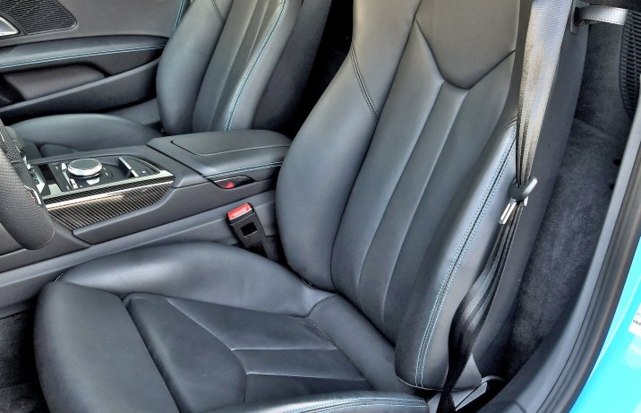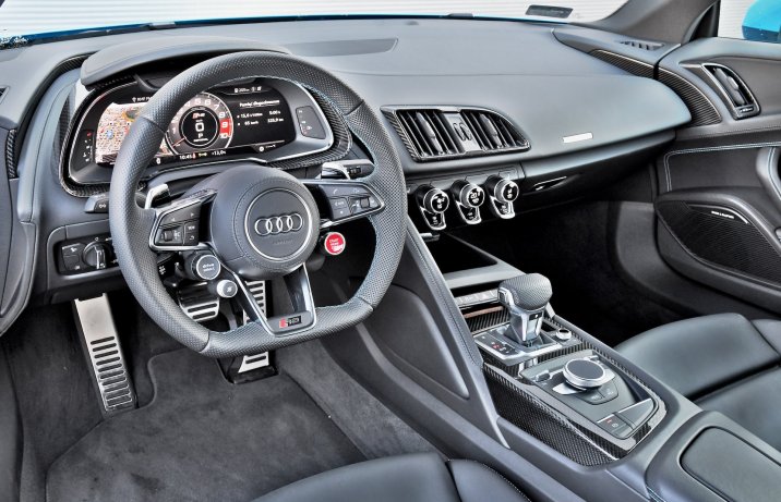 Na koniec łyżka dziegciu: R8 ma doskonałe, obszerne fotele z regulacją szerokości boczków i długości siedziska, ale umieszczono je nieco za wysoko, a podłokietniki – za nisko. Pod tym względem Audi blisko do starszych supersamochodów z Włoch. Ograniczona przestrzeń nad głową sprawia, że najlepiej siedzieć tu w pozycji półleżącej, a osoby o wzroście przekraczającym 190 cm będą odczuwać dyskomfort także z uwagi na przeciętny zakres regulacji wzdłużnej fotela. Ale w tym tkwi urok R8 i jego silnika – ten samochód nie goni za doskonałością ani za wspomagaczami. W dzisiejszych czasach to towar coraz bardziej niszowy.