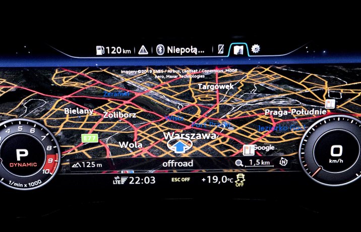 Także sterowanie – za pomocą przełączników na kierownicy oraz panelu z kontrolerem w konsoli środkowej – nie angażuje nadmiernie uwagi kierowcy. A dogodnej lokalizacji bezprzewodowej ładowarki smartfona oraz pokręteł do regulacji wentylacji – umieszczono je w zasięgu prawej dłoni – może Audi pozazdrościć wiele „cywilnych” aut.