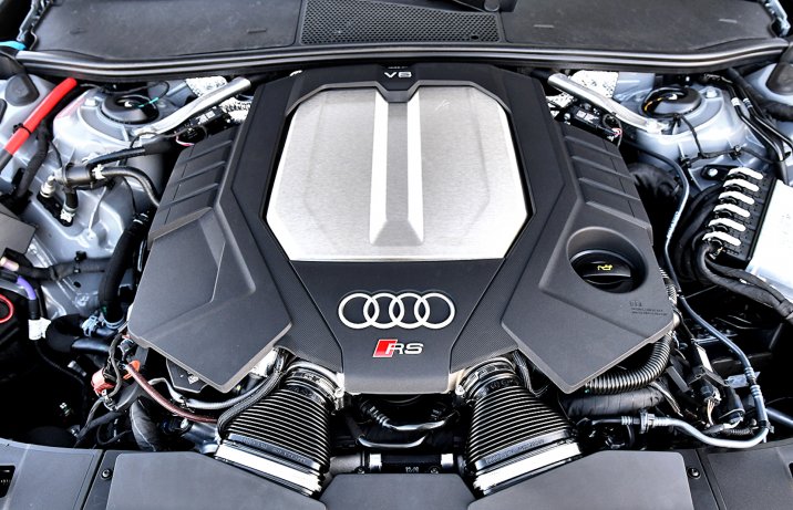 Najważniejszą wizytówkę nowego RS-a stanowi zmodyfikowana, 4-litrowa jednostka V8, która w najnowszym wydaniu została obudowana układem mikrohybrydowym. Zaopatrzony w alternator z funkcją rozrusznika, instalację 48-woltową oraz dodatkowy akumulator litowo-jonowy potrafi on jeszcze podczas jazdy załączyć system start/stop oraz, w zakresie prędkości 50-160 km/h, „żeglować” (silnik wyłącza się na 40 s) lub odzyskiwać energię.