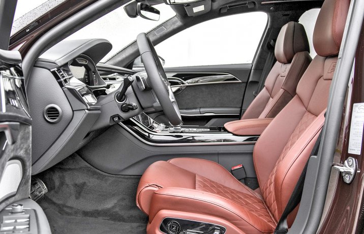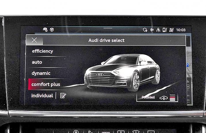Obok potężnego silnika pierwszy z brzegu przykład stanowi seryjne pneumatyczne zawieszenie korzystające z osobnych siłowników elektromechanicznych przy każdym kole oraz ze „skanującej” nawierzchnię kamery. Jego obecność zauważa się jednak jeszcze przed zajęciem miejsca w fantastycznie wykończonej kabinie. Wystarczy bowiem chwycić za klamkę, aby S8 uniosło się o 5 cm, ułatwiając w ten sposób wsiadanie.