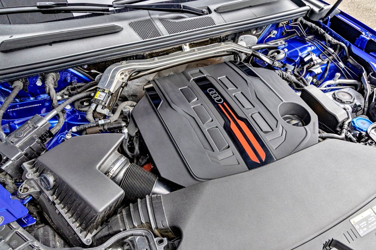 I tak dochodzimy do sedna, czyli do serc tych mocnych maszyn 4x4. W SQ5 pracuje benzynowy silnik V6 3.0 turbo z układem hybrydowym MHEV plus, który dostarcza dodatkowy „zastrzyk” momentu i umożliwia pokonanie krótkich odcinków – np. podczas manewrowania – na napędzie elektrycznym.