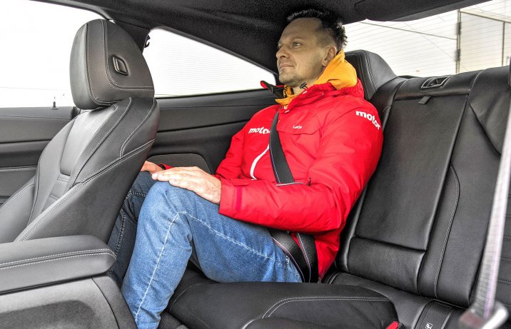 Choć coupe kupuje się oczami, a nie ze względu na przestrzeń wewnątrz, nie sposób nie docenić większej ilości miejsca w kabinie nowego auta względem poprzednika. Z tyłu, czyli tam, gdzie niemiecki model i tak oferował niezłe warunki, przybyło nieco centymetrów na wysokości barków. Na nogi miejsca nadal jest ponadprzeciętnie dużo, natomiast „powietrze” nad głowami kończy się przy około 185 cm wzrostu.