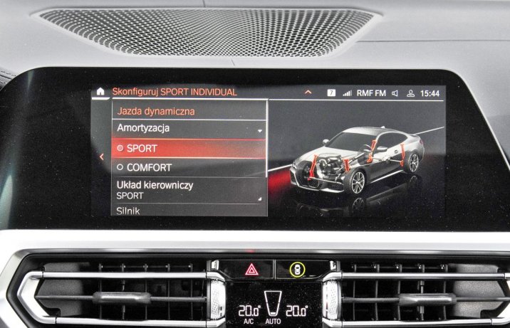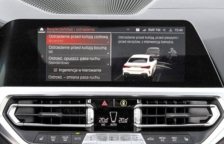 Dopłaty wymagają także 10,25-calowy ekran zegarów i rozbudowany system operacyjny z 12,3-calowym centralnym wyświetlaczem dotykowym (pakiet BMW Live Cockpit w cenie 7220 zł). Działa on płynnie i pomimo kolejnych funkcjonalności, jakie pojawiają się przy jego każdej aktualizacji, nieustannie zachwyca swoimi czytelnością oraz prostotą obsługi. Można nim zarządzać na kilka sposobów – dotykowo, gestami (zbędny wydatek 1360 zł) oraz pokrętłem z przyciskami, co okazuje się najwygodniejsze. Zapewnia on łączność online i skupia w sobie m.in. Android Auto, Apple CarPlay czy możliwość zdalnego zarządzania wybranymi elementami auta za pomocą aplikacji w smartfonie. Tak naprawdę brakuje tu tylko jednego – nadal niedostępnej w języku polskim obsługi komend głosowych.