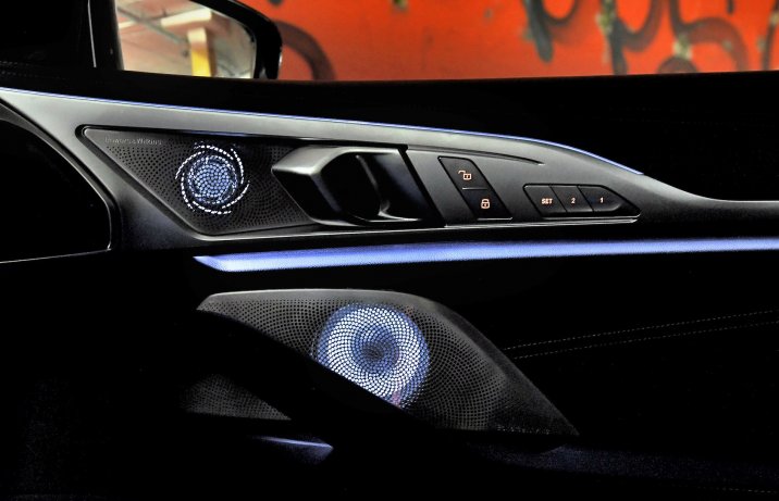 Atrakcyjny detal widoczny po zmroku: nastrojowe podświetlenie maskownic głośników systemu Bowers & Wilkins (opcja za 29 094 zł).