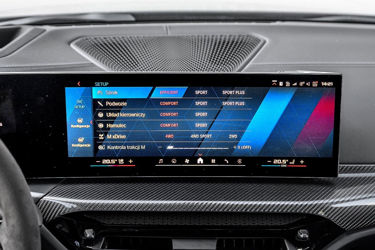 Matryca ustawień poszczególnych podzespołów na początku może przytłaczać, ale to wszystko ma sens: są tu m.in. zbiorczy widok wszystkich opcji, osobny przełącznik do wyostrzenia reakcji na gaz i pracy skrzyni oraz przyciski M1 i M2 do stopniowego odłączenia elektronicznej „niani” i uwolnienia pełnego (czyt. szalonego) potencjału BMW.