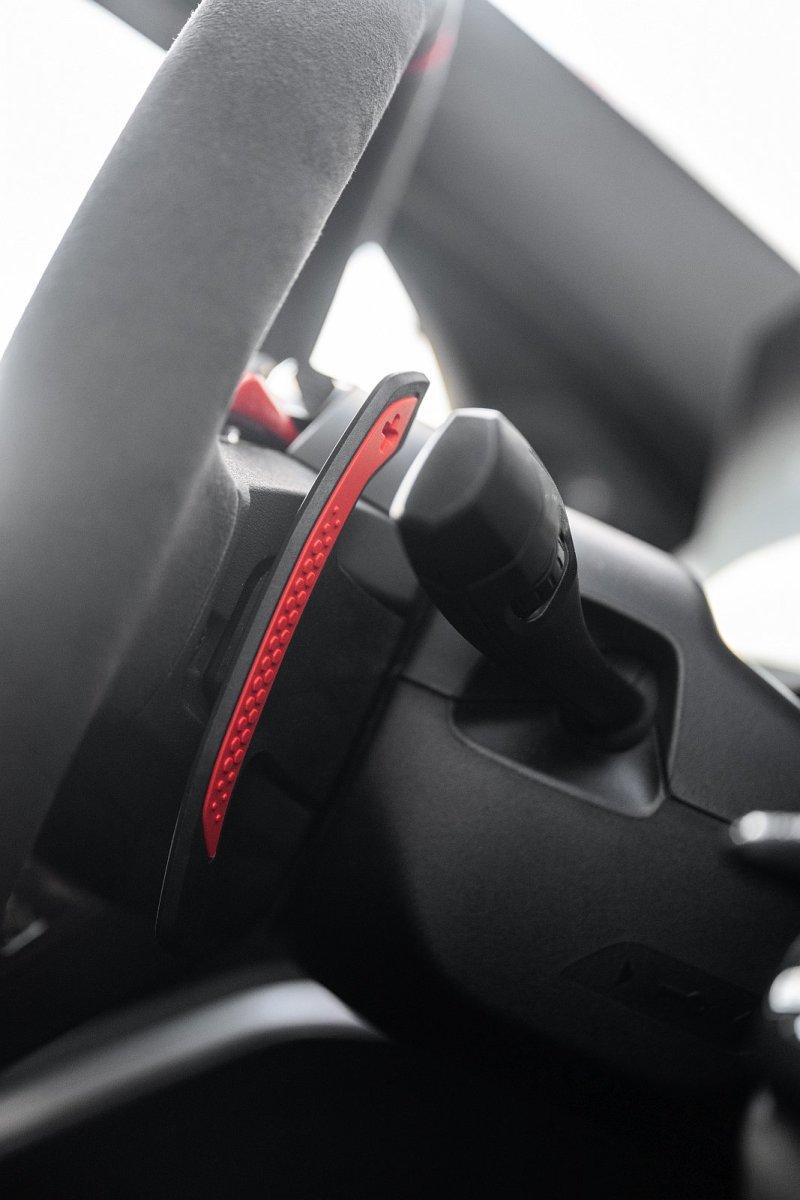 Na ten obraz „pracuje” wiele detali: zmiany w konfiguracji adaptacyjnych amortyzatorów, układu kierowniczego i hamulców oraz systemów kontroli stabilności, usztywnienie nadwozia dzięki zastosowaniu rozpórki przednich kielichów (opcja za 5000 zł), sztywniejsze mocowania silnika oraz garść lekkich dodatków, co pozwoliło obniżyć masę własną o około 20 kg.