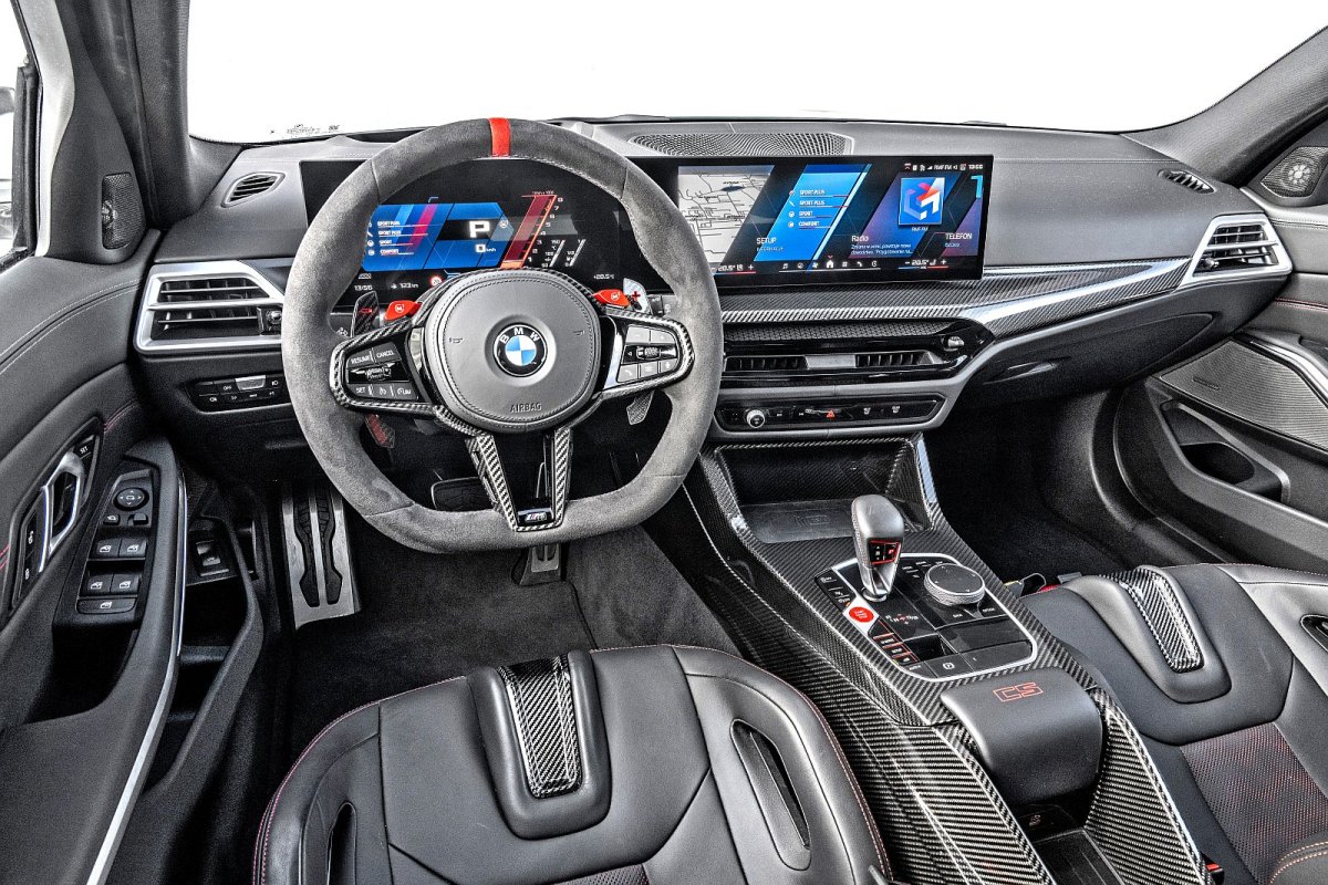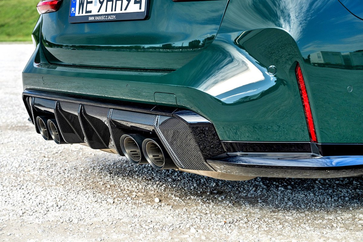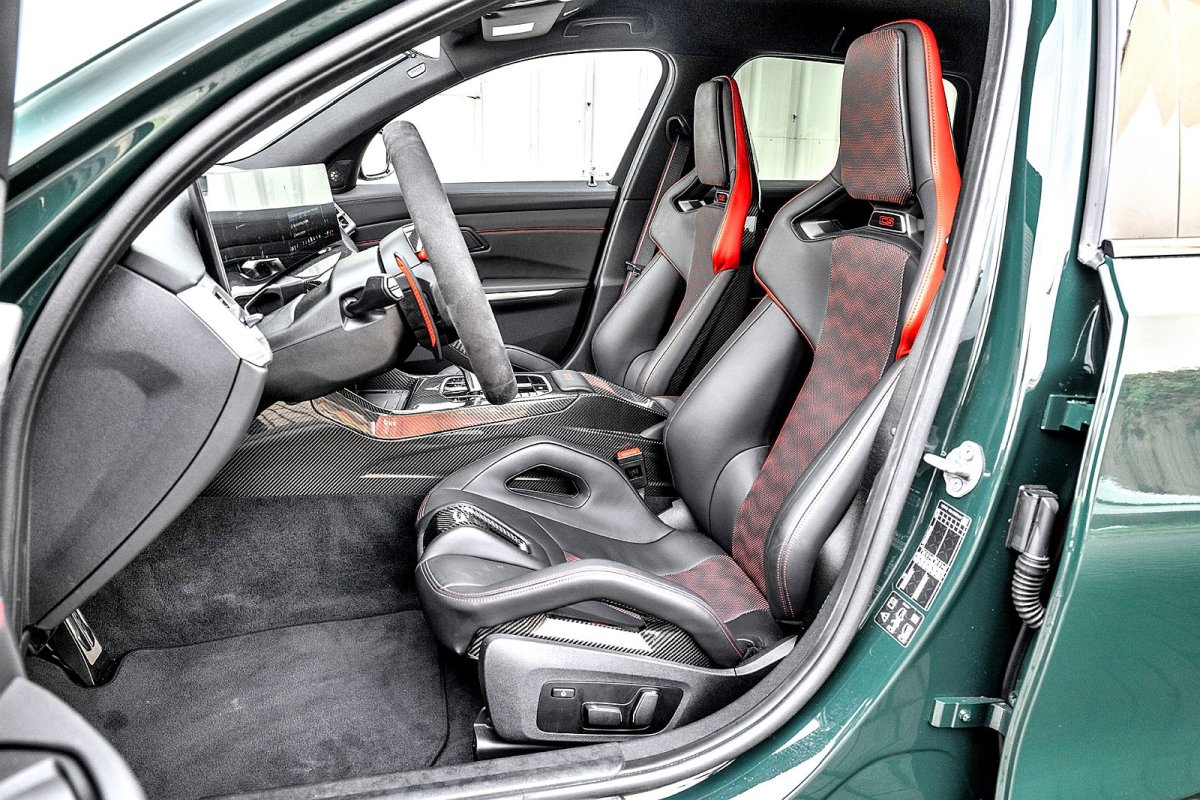 Miejsca na rozsądek nie ma tu za wiele. Cena: bazowo 740 tys. zł wobec 515 tys. zł za słabsze o 21 koni M3 Competition xDrive Touring (551 vs 530 KM). Czas potrzebny na przyspieszenie od 0 do 100 km/h skraca się o symboliczne 0,1 s (do 3,5 s), do tego mamy dość uciążliwe we wsiadaniu i wysiadaniu kubełkowe fotele z elementami z włókna węglowego oraz wymagający uwagi przy parkowaniu przedni splitter, tracimy natomiast podłokietnik oraz uchwyt na kubki. A, no i jest głośniej. I sztywniej.