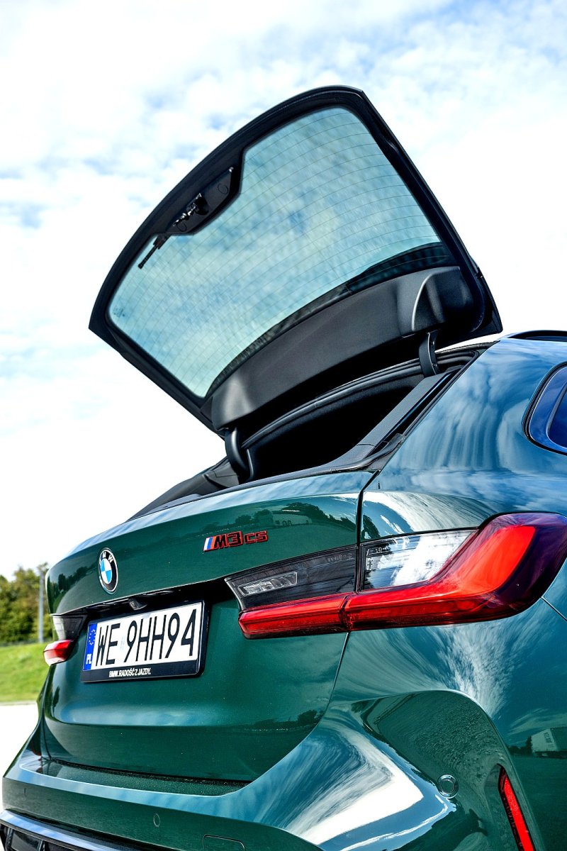 Na szczęście to praktycznie cała lista wyrzeczeń – M3 CS Touring w dużej mierze pozostało tym samym funkcjonalnym kombi, co słabsze odmiany. Kabina jest przestronna, z tyłu wygodnie mogą podróżować osoby mierzące ok. 1,85 m wzrostu, a bagażnik mieści 500 l i ma szereg praktycznych akcesoriów do umiejscowienia mniejszych przedmiotów, w tym haki oraz dwa schowki pod podłogą. Są też elektryczne składanie oparć kanapy (po złożeniu powstaje płaska powierzchnia) oraz otwierana tylna szyba, której niestety nie ma już w aktualnej serii 5 Touring.