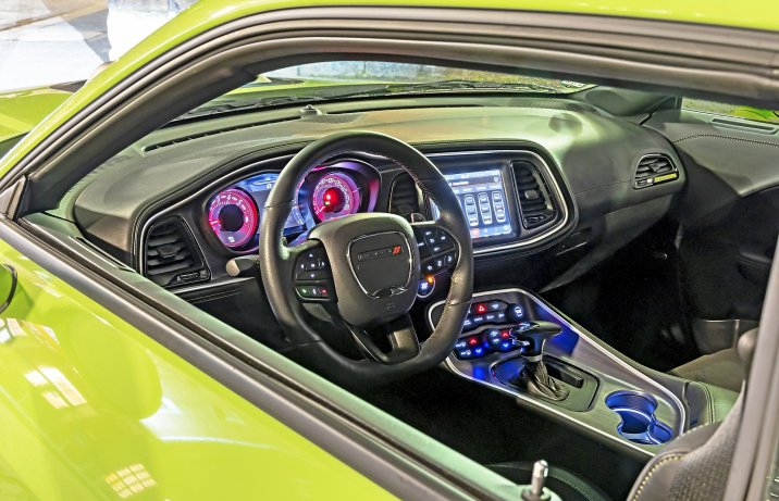 Dodge z szerokim, rozpostartym nad asfaltem splitterem ryczy jak typowe amerykańskie V8. Po osiągnięciu czerwonego zakresu kierowcy może gwałtownie podskoczyć ciśnienie. Wystający z maski, zamocowany do silnika „shaker” trzęsie się przy każdym dotknięciu pedału gazu. A piekielny hymn amerykańskiego silnika odbija się echem od ścian portowych magazynów. Brzmi niczym bolid NASCAR szykujący się do wyścigu Daytona. Bo Challenger robi show wszędzie, gdzie się pojawia. Silnik generuje swoje parametry bez dodatkowych pomocników w postaci doładowania, tylko dzięki dużej pojemności i rosnącym obrotom, które ostro zaprzęgają do galopu tylną oś.