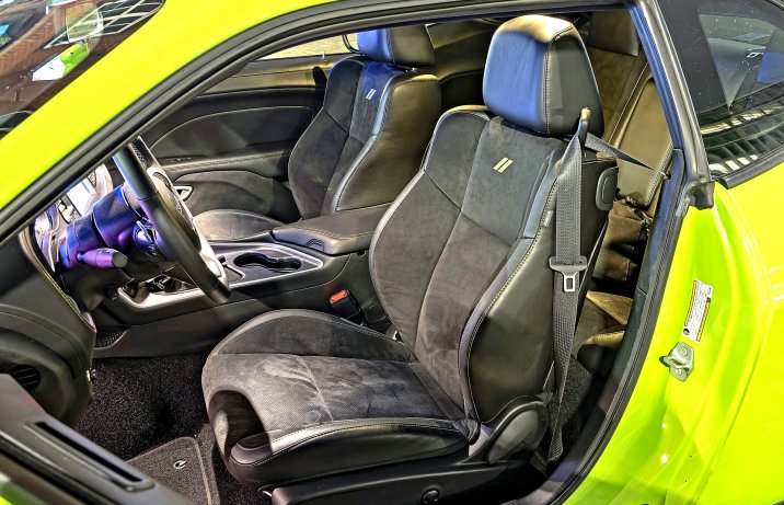 Challenger R/T Scat Pack Swinger Widebody w specjalnej edycji „Last Call” z 6,4-litrowym, wolnossącym silnikiem Hemi V8 przyciąga uwagę. Z pewnością pomaga mu w tym znacznie lepiej prezentujący się na tle nocnego miasta lakier Sublime Green. M8 w demonicznym kolorze Frozen Black pochłania każde światło niczym czarna dziura.