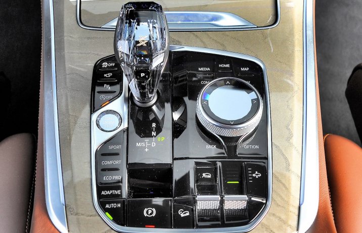 Dźwignia automatu, przycisk startera oraz pokrętła głośności i iDrive mogą być wykończone kryształem.