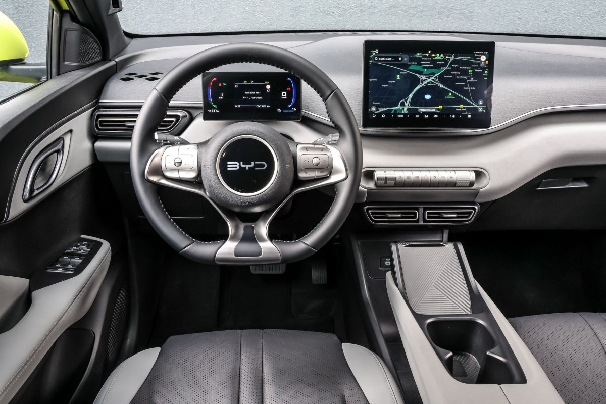 Zupełnie inaczej wypada BYD Dolphin Surf: w wersji wyposażenia Boost mamy do dyspozycji 88 KM, dzięki czemu można się spokojnie poruszać po drogach krajowych lub autostradach. Zasięg obliczony na podstawie zużycia w teście wyniósł maksymalnie 229 km (Dacia: 146), co w połączeniu z nawigacją z wbudowanym planowaniem ładowania pozwala bez problemu pokonywać też dłuższe trasy. Tym bardziej że małe chińskie auto ładuje się z mocą do 85 kW, a więc ok. 2-3 razy szybciej niż Spring.
