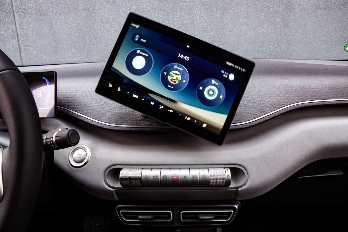 Przed prowadzącym – poręczna, ciekawie wyglądająca kierownica i niewielki, ale bardzo czytelny ekran instrumentów. / fot. Daniela Loof/AZ