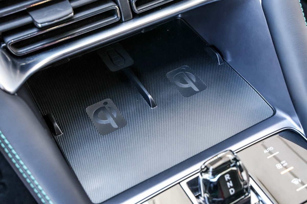 Coraz częściej spotykane obecnie dwie ładowarki indukcyjne z przodu – dla kierowcy i pasażera. / fot. Daniela Loof/AZ