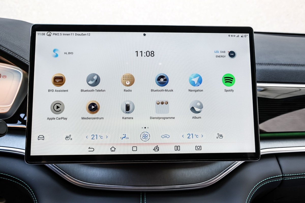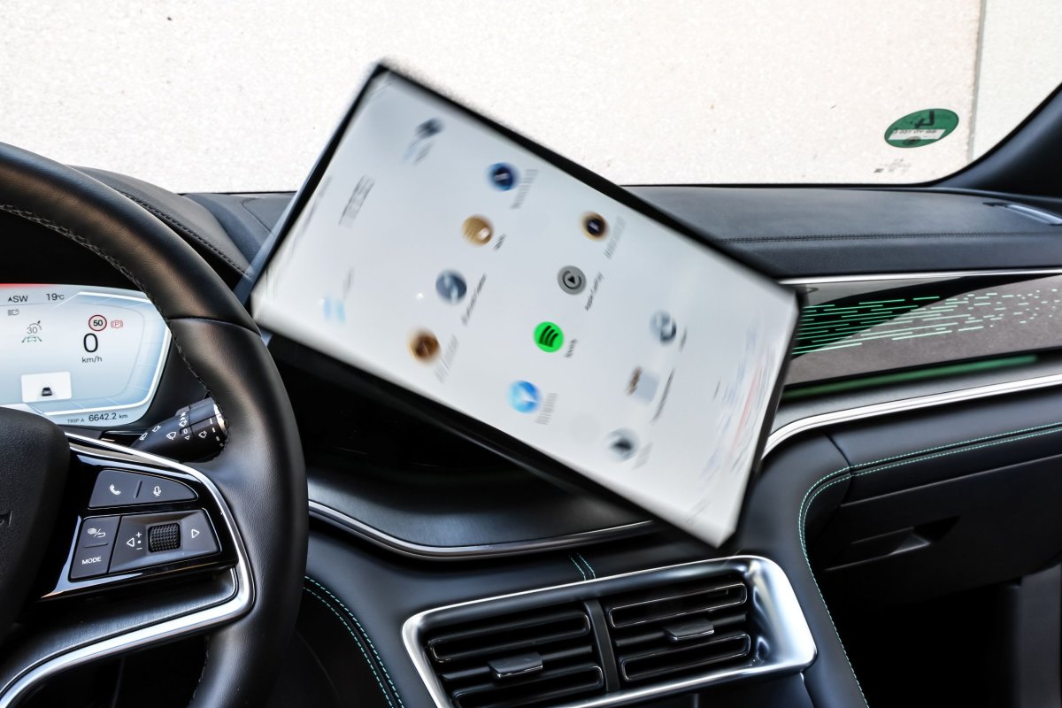Wyświetlacze w BYD-zie są bardziej czytelne. Kierowcy o krótszych rękach mogą jednak narzekać na zbytnie oddalenie dużego ekranu dotykowego. Centralny monitor można za to obrócić o 90 stopni, zmieniając jego pozycję z pionowej na poziomą. Zdarza się, że zmiana ta następuje samoczynnie, np. podczas manewrów na torze, co bywa problematyczne. Trudności miewa też sterowanie głosem, które często ma kłopoty z rozpoznawaniem poleceń. Dodatkowo pojawiają się błędne wskazania odległości do najbliższej stacji ładowania.