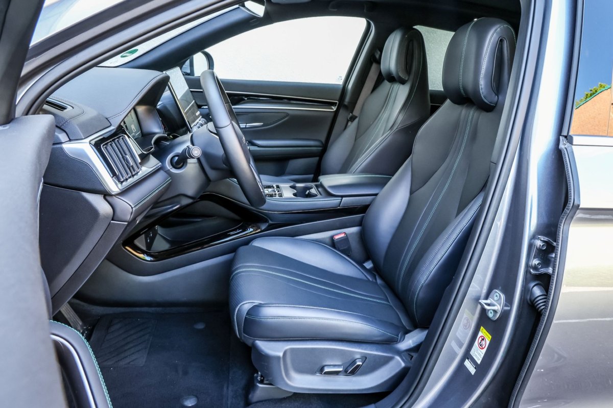 Miękkie przednie siedzenia BYD-a nie zapewniają dobrego podparcia bocznego w zakrętach. / fot. Daniela Loof/AZ