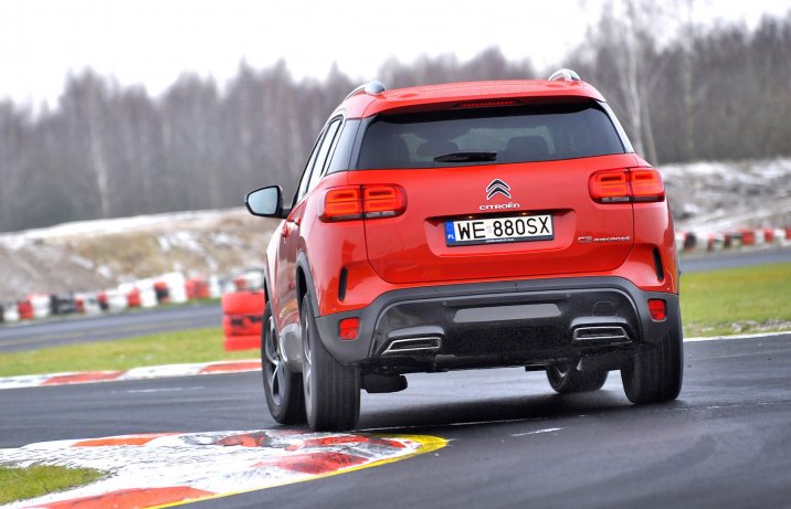 Swoją charakterystyką przypomina nieco „hydropneumatykę”, ale przy zachowaniu konwencjonalnej konstrukcji. Na zniszczonych drogach C5 Aircross przyjemnie „odcina” podróżujących od nawierzchni, choć trzeba przywyknąć do – łagodnego, ale jednak – „bujania” karoserii oraz wyczuwalnych przechyłów na łukach. Mimo miękko zestrojonego podwozia i silnego wspomagania kierownicy Citroen prowadzi się zaskakująco bezpiecznie. Nawet w ciasnych zakrętach, z pomocą skutecznie zestrojonego ESP, posłusznie utrzymuje tor jazdy i nie zaskakuje podsterownością.