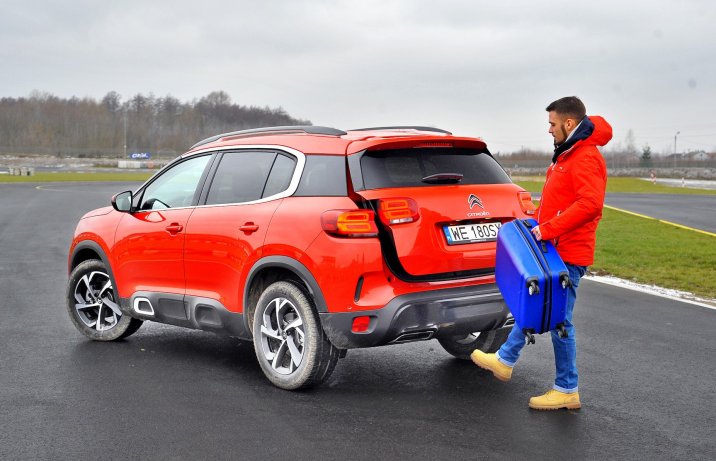 Także bagażnik wypada lepiej niż średnia: już bazowo jest bardzo pojemny (580 l), a można go powiększyć poprzez odsunięcie kanapy (do 720 l) lub złożenie oparć (do 1630 l). Powstaje wówczas równa powierzchnia. Do pełni szczęścia brakuje tylko haczyków w burtach oraz wyżej unoszonej pokrywy – ok. 183 cm grozi uderzeniem głową w zabudowę. Z perspektywy kierowcy Citroen zwraca uwagę „przytulnymi” fotelami z dużym zakresem regulacji.