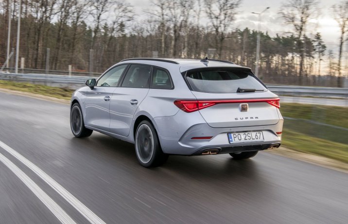 Wariant hybrydowy względem wersji 1.5 TSI waży aż o 343 kg więcej, czyli 1717 kg. Jak na kompaktowe kombi to bardzo dużo, jednak dodatkowe kilogramy są dobrze kamuflowane. Wprawdzie Cupra e-Hybrid nie ma lekkości i zwinności zwyczajnych odmian, jednak to nadal auto skuteczne w zakrętach i chętnie wcielające w życie wolę kierowcy.