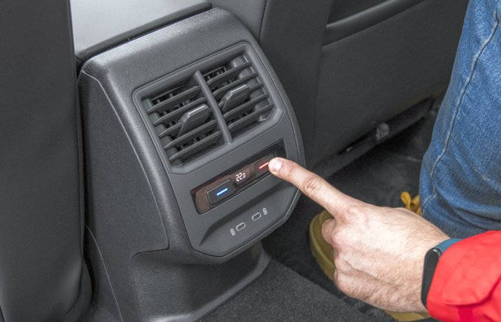 Klimatyzacja 3-strefowa należy do wyposażenia seryjnego. Poniżej: dwa wejścia USB-C. Niestety, w kabinie próżno szukać klasycznych wejść USB.