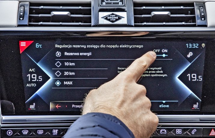 Pomiary odbywały się przy temperaturach ok. 0ºC. Producent deklaruje, że zasięg na prądzie wynosi 50 km i zapewne można zbliżyć się do tej wartości przy spokojnej jeździe w cieplejszych miesiącach. Największym atutem DS-a jest...spokój, jakim to auto emanuje podczas jazdy. W trybie hybrydowym, gdy do akcji włącza się też silnik benzynowy, cały napęd pracuje bardzo cicho i aksamitnie niczym jednostki widlaste.