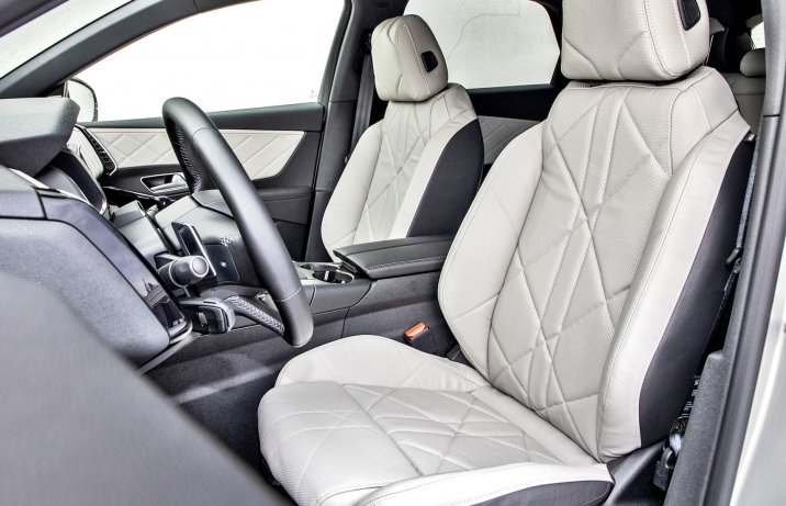 Wymiary DS 7 w większości są nieco mniejsze niż Q5 czy GLC. Samochód mierzy niespełna 460 cm długości i 191 cm szerokości, a rozstaw osi wynosi 274 cm. Tyle jednak wystarczy, by w kabinie mogły wygodnie podróżować 4 wysokie osoby. Wnętrze jest szerokie, obszerne przednie fotele łączą wygodę z dobrym podparciem, a kanapa ma elektrycznie regulowane pochylenie oparcia. Brakuje jej jednak lepszego podparcia ud.