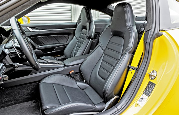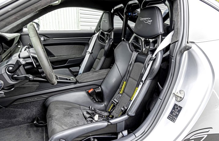 Turbo w razie potrzeby oferuje miejsce – a przynajmniej trochę miejsca – dla czterech osób i bagażu. RS zaaranżowano z myślą o dwójce i nie przewidziano przestrzeni na bagaż. Obszar pod maską zajęła chłodnica, ale dzięki elementom odprowadzającym ciepłe powietrze służy on też aerodynamice. Za fotelami kubełkowymi rozgałęzia się klatka bezpieczeństwa. Między rozpórkami zmieści się jedynie torba z niezbędnymi rzeczami na kilka dni lub kaski na tor. Podczas gdy w Turbo S podróżujemy na wygodnych, adaptacyjnych sportowych siedzeniach o szerokim zakresie regulacji, w RS mamy fotele kubełkowe, których minimalne wyściełanie służy jako powierzchnia dostarczająca informacje z drogi i, podobnie jak zawieszenie i napęd, bezpośrednio komunikuje się z kierowcą.