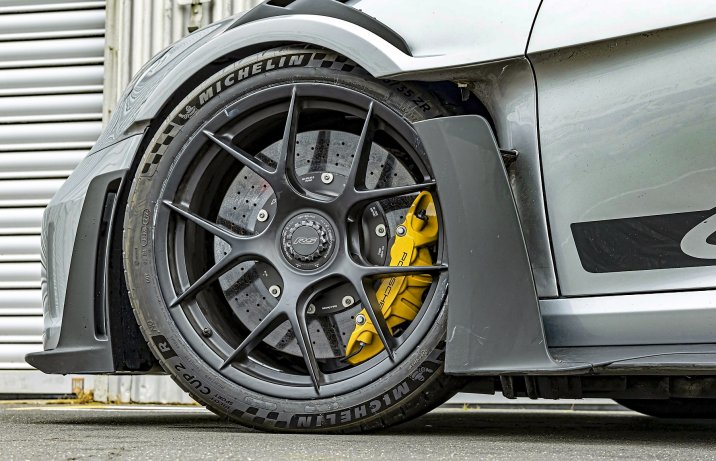 GT3 RS pozwala na ultraprecyzyjne celowanie w wierzchołek zakrętu. Wytwarza do 800 kg docisku, w przypadku Turbo S to zaledwie 170 kg.