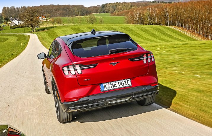 Ford oferuje elektrycznego Mustanga z napędem na tylne lub na wszystkie koła. Testowana odmiana AWD poza zamontowanym przy tylnej osi silnikiem elektrycznym (269 lub 294 KM, zależnie od wybranej pojemności akumulatora) dysponuje jeszcze drugą jednostką, napędzającą przednie koła. Łącznie tandem ten generuje moc 351 KM i 580 Nm maksymalnego momentu obrotowego. Bez trudu radzi sobie z ważącym 2,2 tony samochodem i rozpędza go od 0 do 100 km/h w niecałe 6 sekund.
