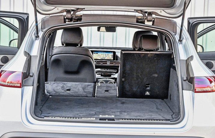 Kabina jest wystarczająco przestronna, choć obszerna konsola środkowa i stosunkowo małe okna sprawiają, że podróżując EQC, można poczuć się jak w kokonie. Podobnie jak w przypadku iX3, z powodu zastosowania spalinowej platformy nie ma tu dodatkowego bagażnika z przodu, ale ten z tyłu ma przyzwoitą pojemność (bazowo 500 l) oraz organizer pod podłogą. Elektryczny SUV Mercedesa jako jedyny w stawce jest w stanie holować przyczepę o masie do 1800 kg, ale jego prześwit jest raczej zbliżony do aut kompaktowych, a nie SUV-ów (13 cm). Niewiele większy oferuje Ford Mustang Mach-E (14,5 cm). Najlepiej w tej kategorii wypada BMW iX3, zawieszone ok. 18 cm nad ziemią.
