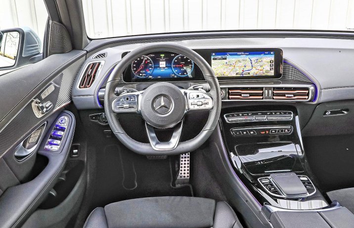 EQC ma rozbudowany system multimedialny, którego obsługa wymaga oswojenia. Sterowanie ułatwia jednak gładzik umieszczony między fotelami oraz inteligentny asystent głosowy. Elementy kokpitu pochodzą z innych Mercedesów, co oznacza, że nie zabrakło tu przycisków prowadzących do podstawowych funkcji. Plus za najbardziej czytelne w tym gronie cyfrowe wskaźniki, które oferują ogromne możliwości personalizacji i kilka wersji graficznych interfejsu.