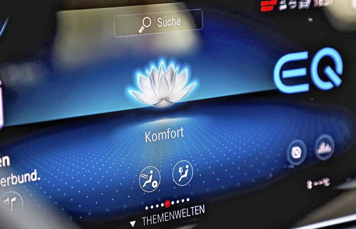 Kokpit EQC – wizualnie nieco przesadzony, ale dopracowany w szczegółach i wykończony z użyciem estetycznych materiałów.
