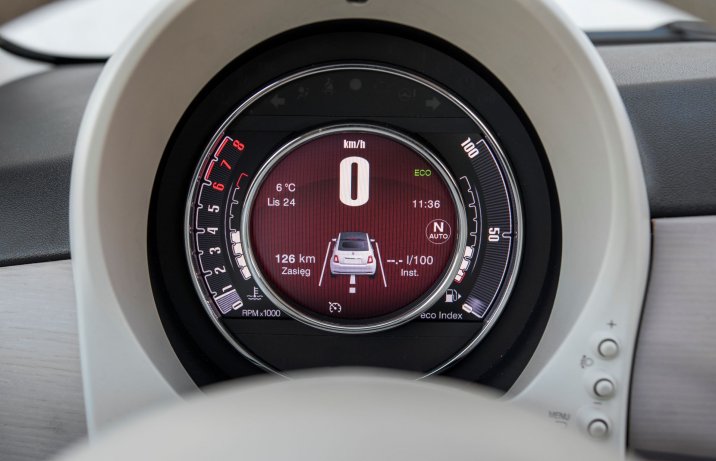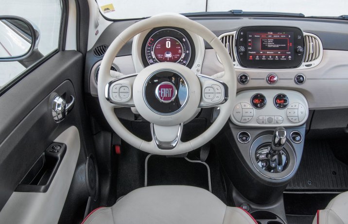 Kokpit „pięćsetki” też właściwie się nie zestarzał. Co prawda jakość tworzyw wykończeniowych nie imponuje (w tej klasie to raczej norma), ale Fiat zdecydowanie nadrabia interesującym designem i nietypowymi szczegółami. Wiele detali jest w kolorze kości słoniowej – nawet kierownica, panel klimatyzacji itp., a niektóre elementy sterujące, głośniki, a nawet zagłówki otrzymały okrągły kształt. Co ważne – obsługa okazuje się łatwa i intuicyjna.