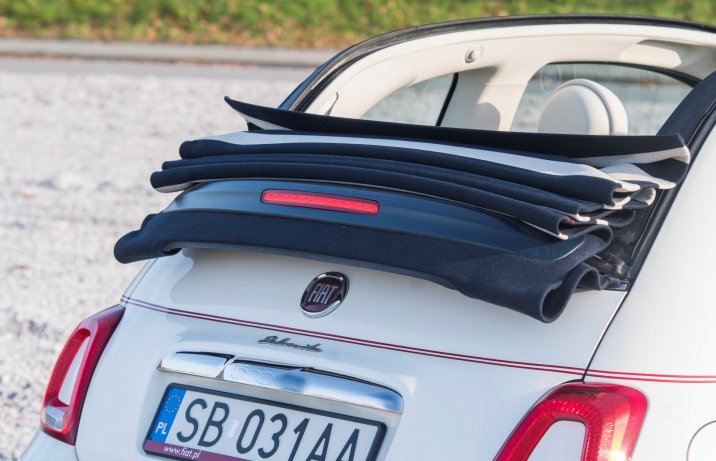 Bagażnik ma 182 litrów pojemności, czyli tylko o 3 l mniej niż w odmianie ze sztywnym dachem, ale w 500C dostęp do niego utrudnia bardzo mała klapa (a więc i niewielki otwór załadunkowy).