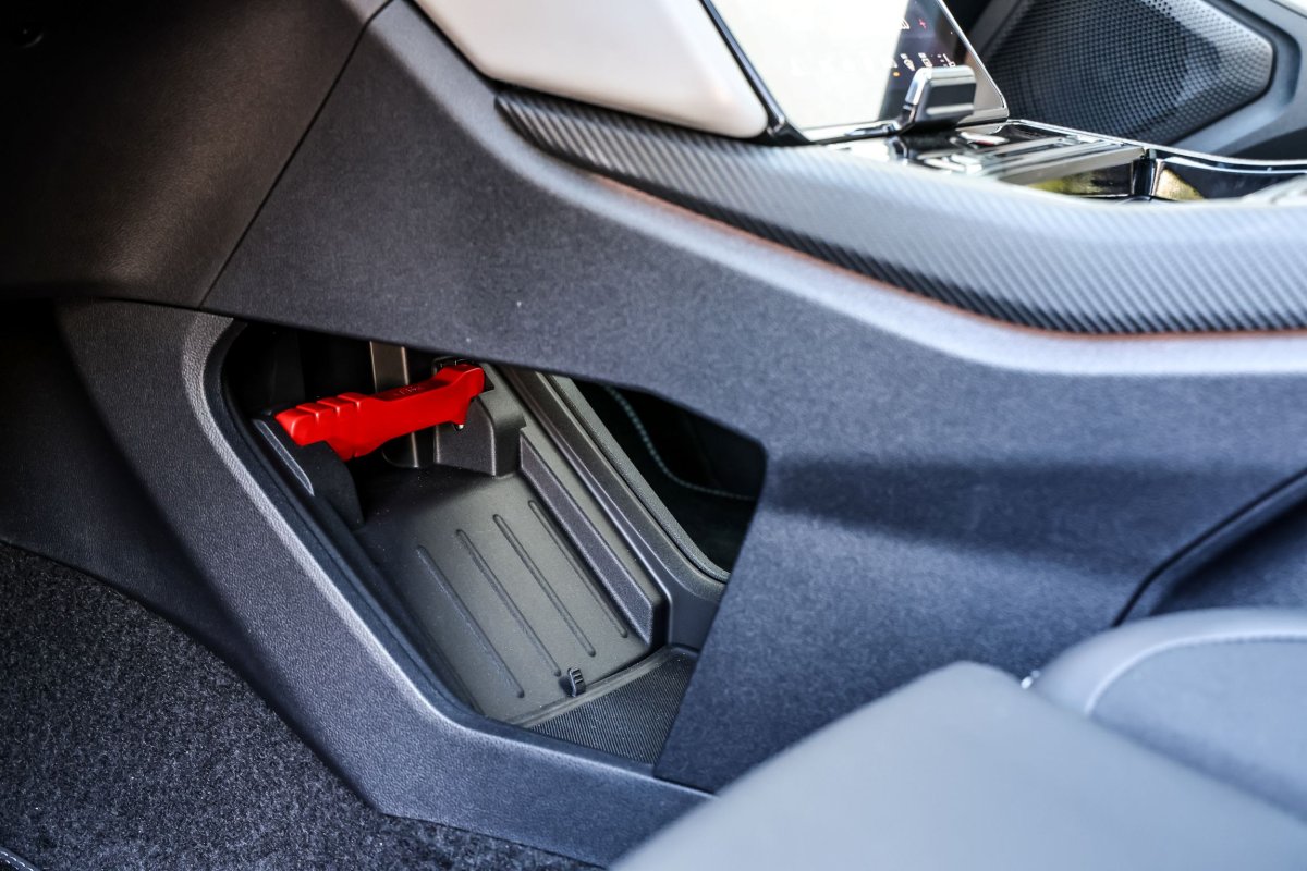 Dla bezpieczeństwa w razie wypadku – zbijak do szyb zamontowany w dużym schowku pod konsolą. / fot. Daniela Loof/AZ