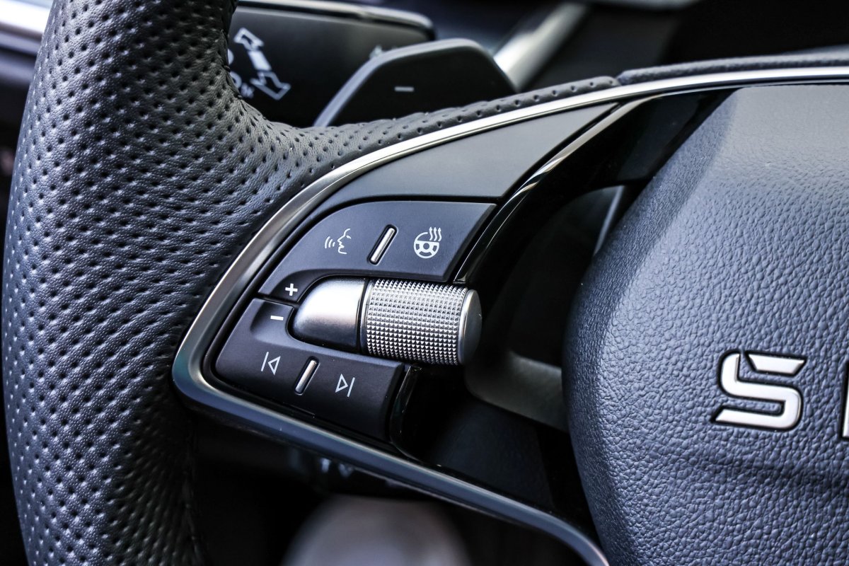 Pola dotykowe na kierownicy i niepraktyczne sterowanie wycieraczkami – pokrętłem. / fot. Daniela Loof/AZ